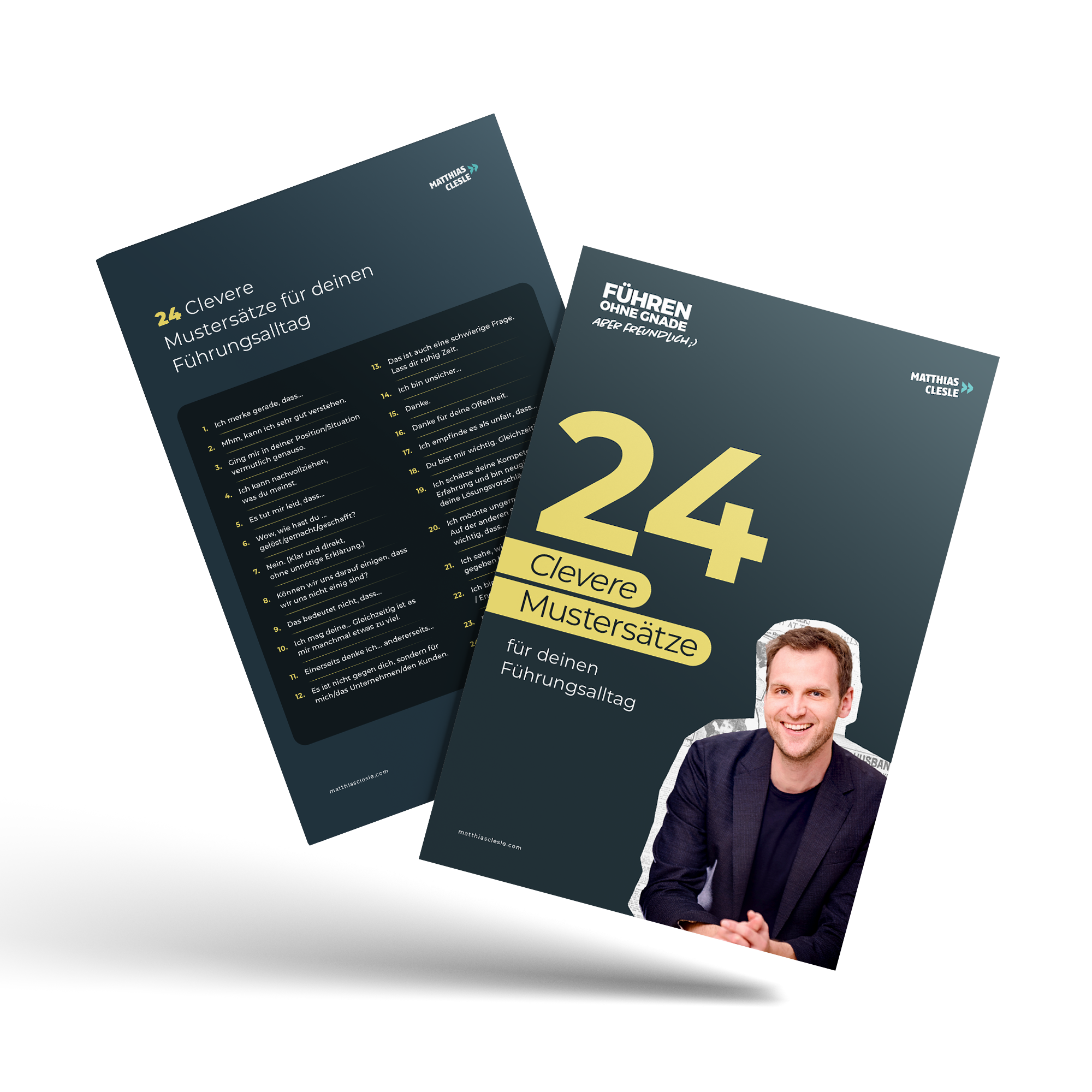 Starke Führung beginnt mit den richtigen Worten. Doch was machst du, wenn dir genau diese fehlen? Genau dafür sind diese 24 cleveren Mustersätze aus unserer täglichen Praxis. Nutze sie, um souverän Konflikte zu lösen, die Leistung deines Teams zu steigern und entspannter durch deinen Führungsalltag zu gehen.